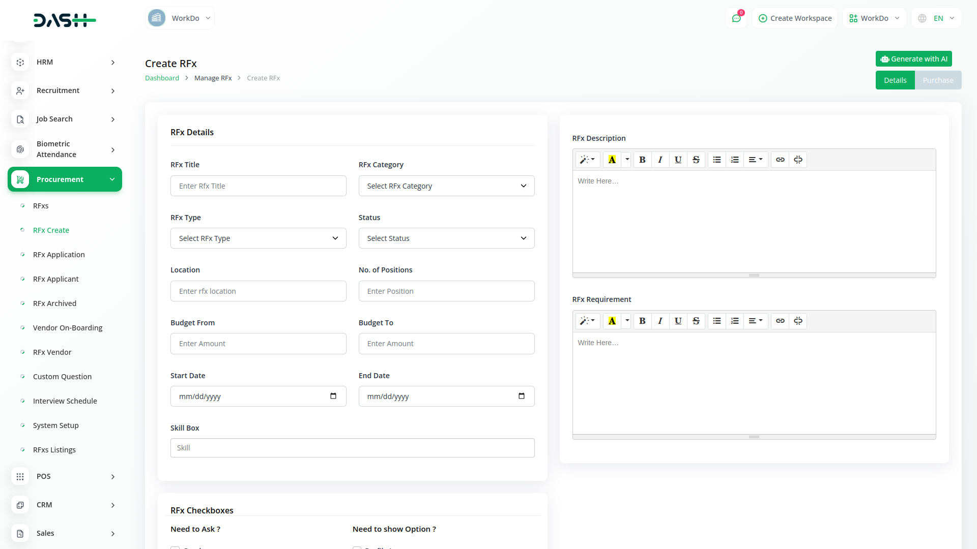 Ensure compliance with organizational policies and regulatory requirements using Dash SaaS`s robust procurement module. Maintain comprehensive records of all procurement activities, including approvals, transactions, and communications. This centralized record-keeping not only simplifies audit processes but also enhances transparency and accountability across your procurement operations..