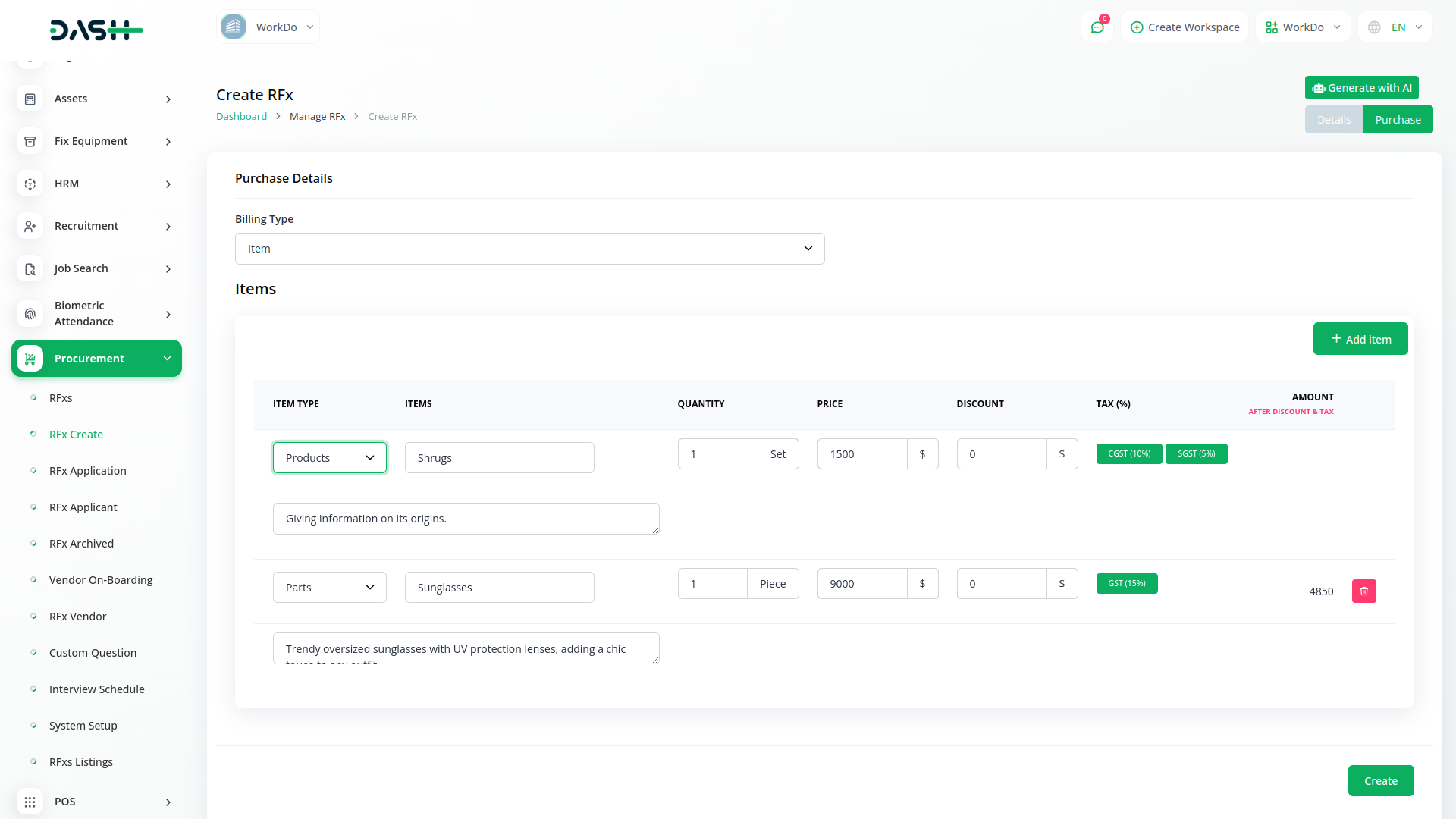 Managing the procurement process can be a time-consuming and complex task. Dash SaaS simplifies this process by providing a central hub for all your procurement needs. Create purchase orders, manage vendor information, track spending, and gain real-time insights into your procurement activities – all within a user-friendly interface.