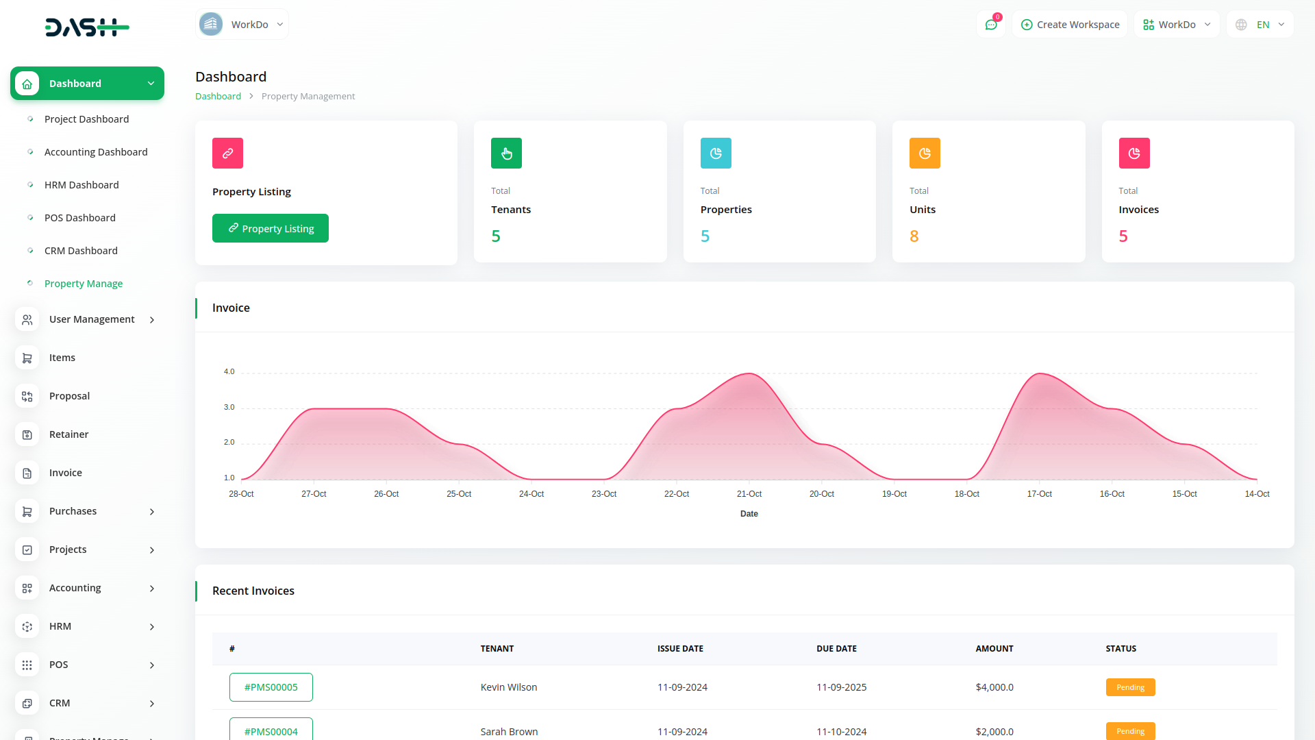 Control and keep track of your invoices with ease. Enhance property oversight and maximize efficiency with our user-friendly Property Management Module, offering a centralized platform for lease management, rent collection, and property maintenance.